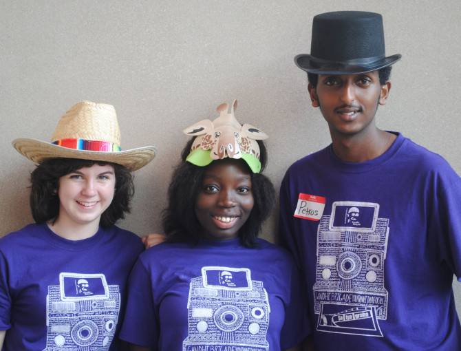 Photobooth: Setting up the photo booth was really fun, because while we were waiting for other people to come and try it out, we tried on almost every hat on the table, swapping around to see who looked funniest in each hat, what the different styles were, and how many ridiculous combinations of hats we could come up with. It was really fun to just joke around and take pictures, and we ended up taking a lot of random photo booth pictures of all of us. When other people did come to the photo booth, we would “advise” them on what hats they should wear, what the best outfit they could make was, and how many different faces they could make in one set of pictures.
